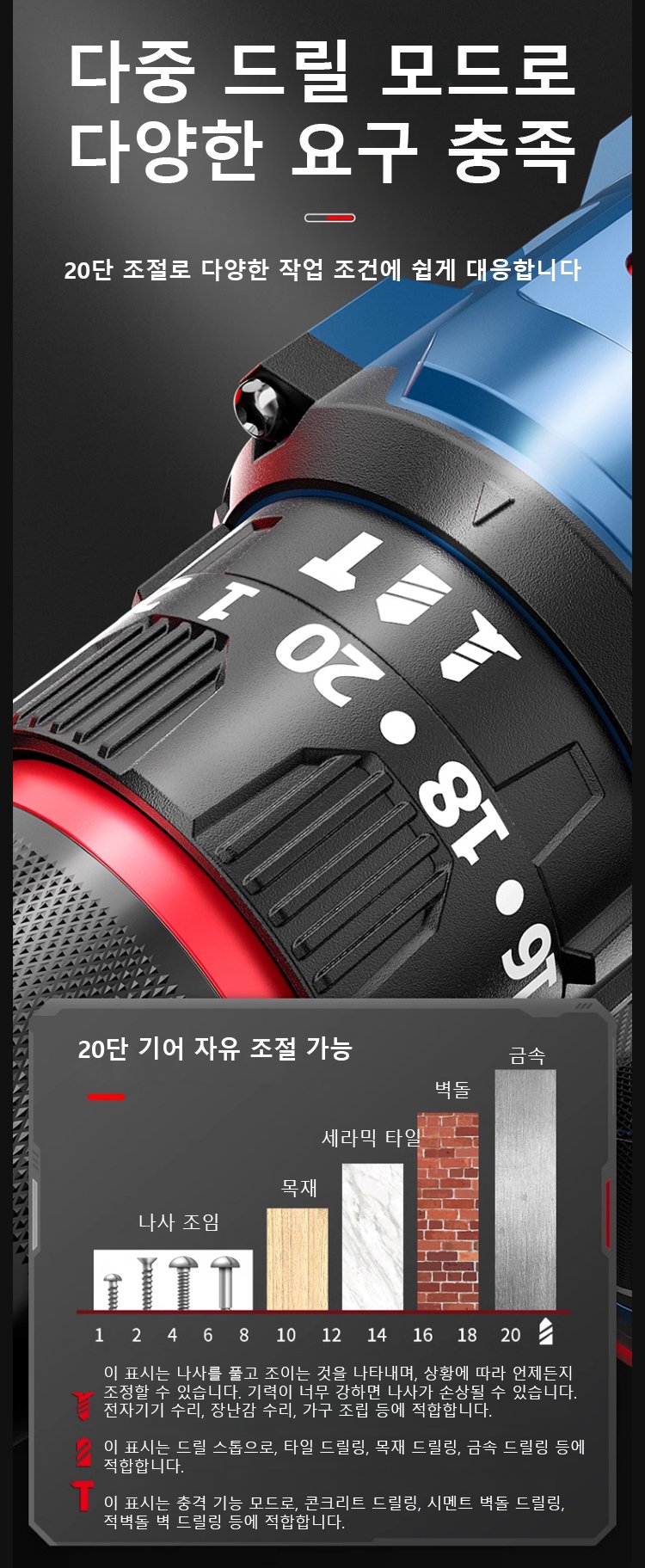 【무적 미니 강포】타격 기능 있는 고출력 휴대용 전기 드릴